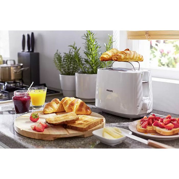 2 velika prilagodljiva otvora za kruh različite veličine. Kruh se drži u sredini kako bi se ravnomjerno pekao s obje strane, zahvaljujući značajci za samocentr
