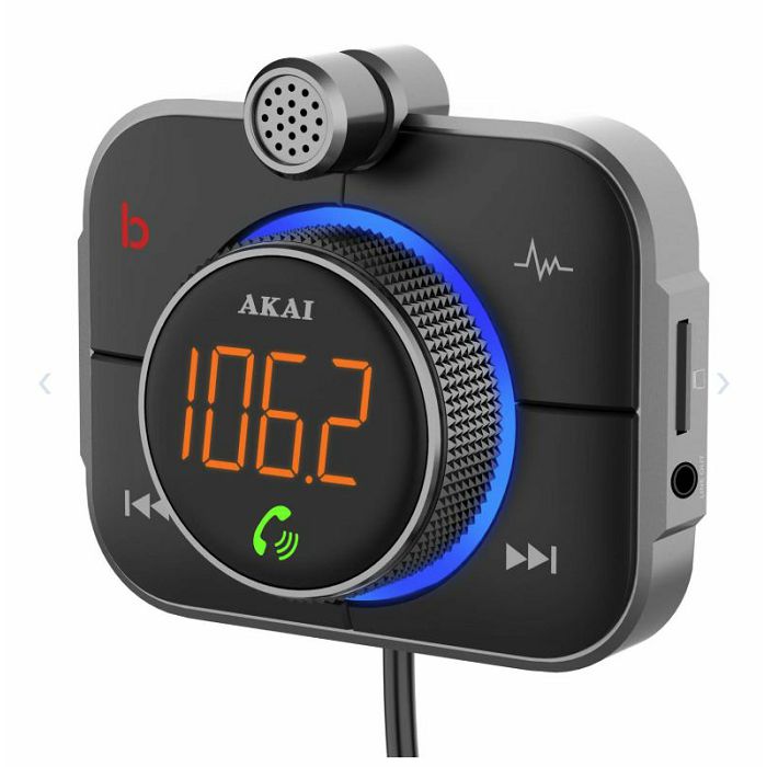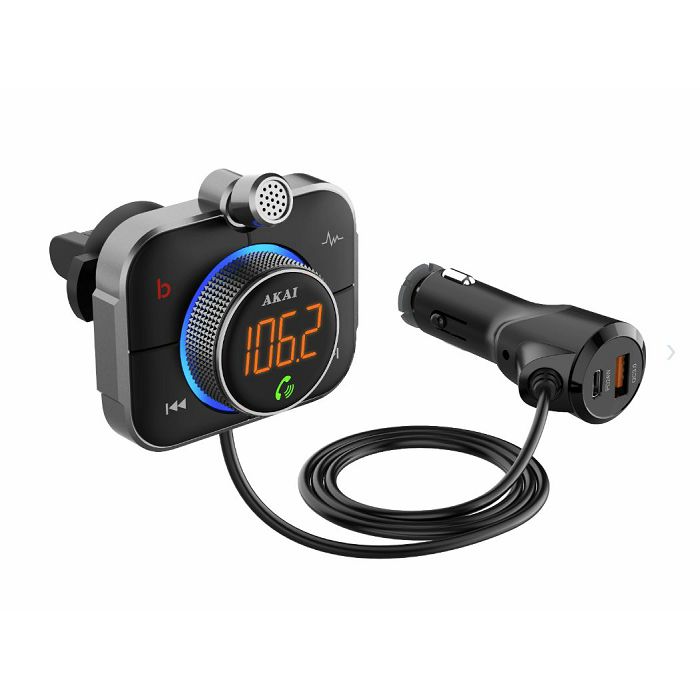 TRANSMITER AKAI PRO, USB+C PUNJAČ, BT, HANDF, MICROSD, 12-24V, CRNI FMT-95BT