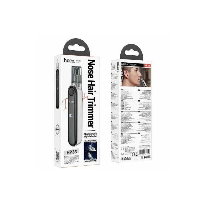 HOCO HP33 je kompaktni trimer za nos koji kombinira moderan dizajn s funkcionalnošću, nudeći precizno podrezivanje neželjenih dlačica. Uređaj je izrađen od visokokvalitetnog materijala i opremljen je inteligentnim LED zaslonom koji obavještava o stan
