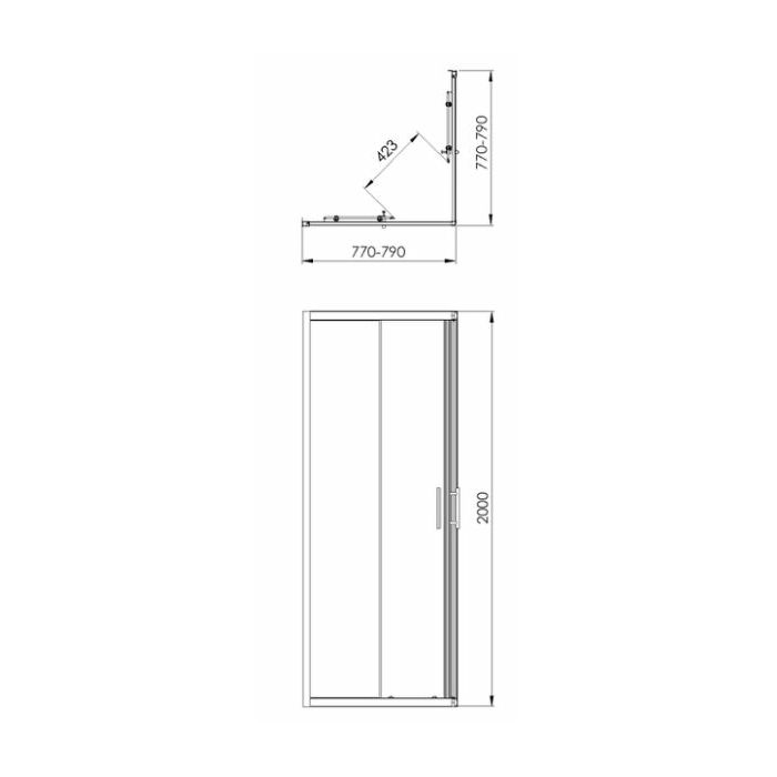 TUŠ STIJENA ANDROMEDA W80 B/1, CRNI PROFIL/PROZ.STAKLO 8 MM