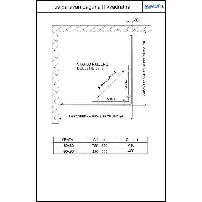 Ovaj moderni stakleni paravan sastoji se od dvije stranice s kliznim vratima istih dimenzija, a prvenstveno je namijenjen plitkim kvadratnim tuš kadama i prostorima za tuširanje izvedenim od keramičkih pločica. Elegantni profili koj
