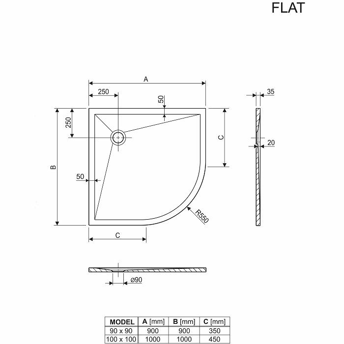 TUŠ KADA FLAT 90x90x2 POLUKRUŽNA