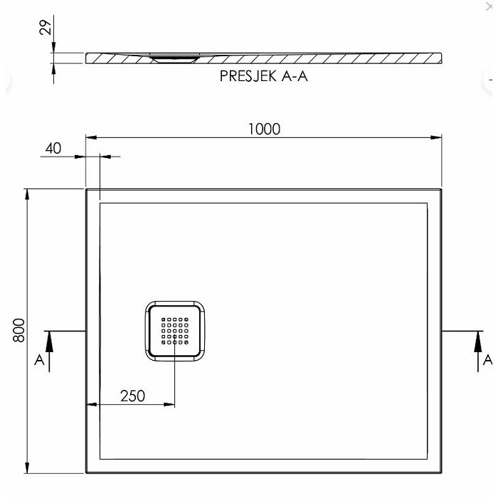 TUŠ KADA TESO 100x80 PRAVOKUTNA