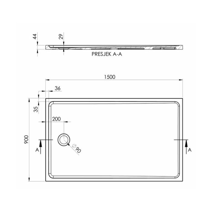 TUŠ KADA TESO 120x90 PRAVOKUTNA