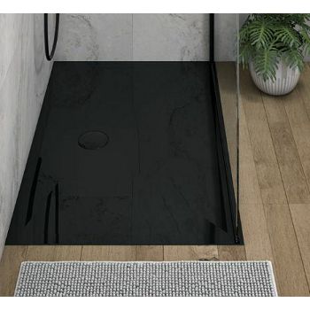 Tuš kada od lijevanog mramora s reljefnom površinom u tamnom odrazu prisne elegancije. Estetski savršen dizajn koji se ne podređuje očekivanjima.