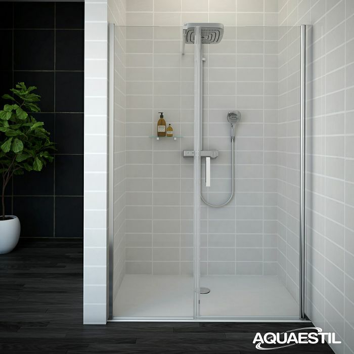 Tuš vrata TAI 11 su tuša vrata za nišu u širini 900mm sa srebrenim profilimai prozirnim staklom.