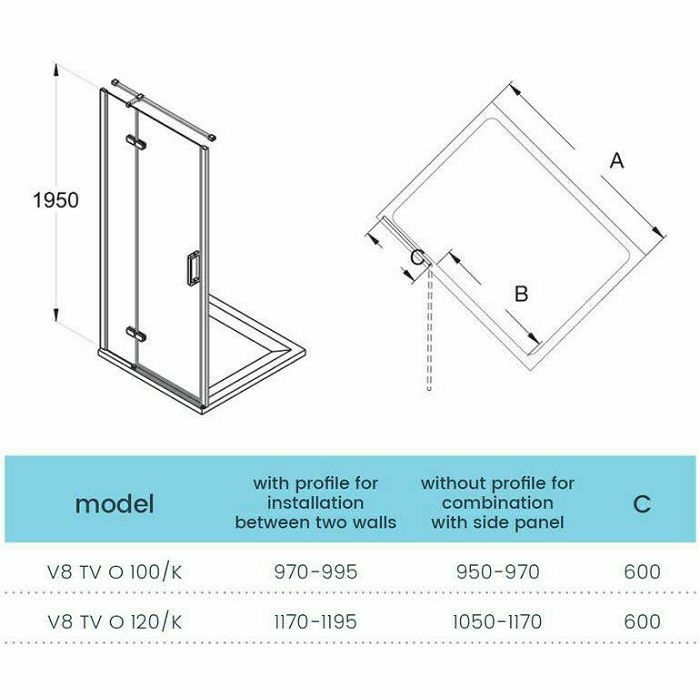 ELEMENT TUŠ KABINE VRATA ATLAS 100x195 6 mm, KROM/PROZIRNO