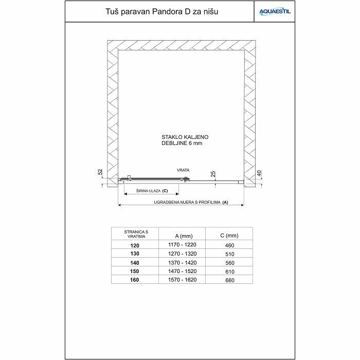 Mars D za nišu je kvalitetan paravan koji je namijenjen ugradnji između 3 zida (u nišu), a sastoji se od jedne fiksne stijene i okretnih vrata. Paravan je opremljen elegantnim, u presjeku okruglim profilima i 6 mm kaljenim staklom koje je tvornički t
