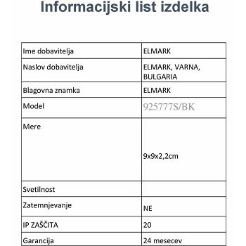 Dimenzije: Promjer 75mm / 90x90x75xx42mm
