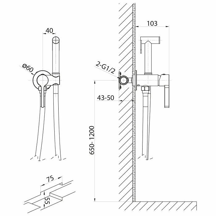 UGR.MIJEŠALICA ZA BIDE SA STOP TUŠEM, CRNA MAT