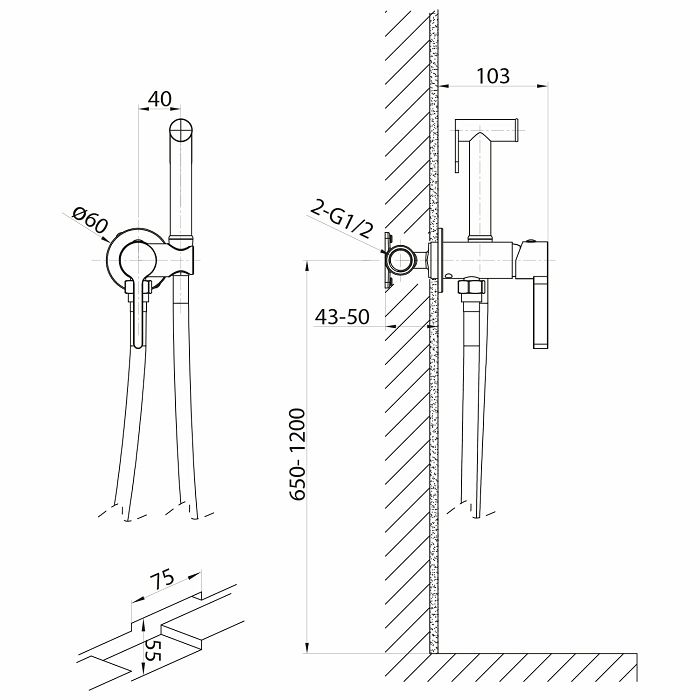 Okretni zglob na strani tuša za sprečavanje neugodnog uvijanja crijeva tuša