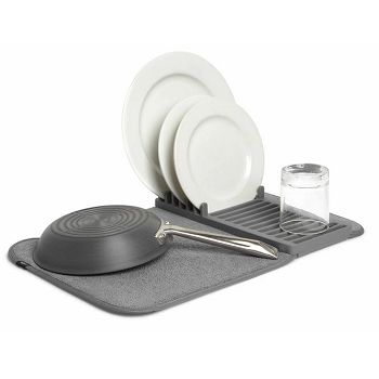 Umbrin Udry Mini kombinira stalak za sušenje posuđa i podlogu za posuđe u jednom, tako da možete uredno slagati i organizirati svoje tanjure, čaše, pribor za jelo, lonce, tave i još mnogo toga kako bi se mogli sušiti na zraku. Sa svojim dnevnim Supe