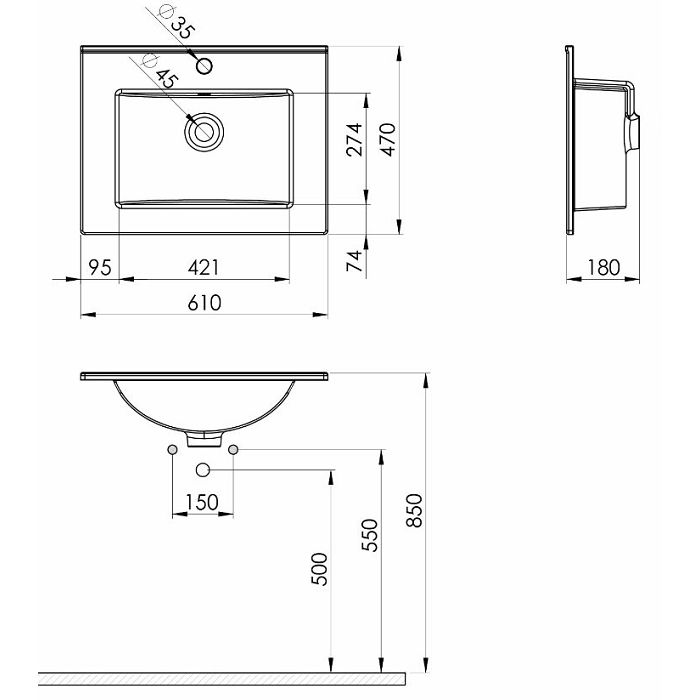 Concepto Melody/Quadro 61 umivaonik za ugradnju na kupaonski element, modernog je dizajna čime će se uklopiti u svaku kupaonicu ili toaletni prostor. Dodatnu funkcionalnost umivaonika čini prostor pored korita koji može služiti za o