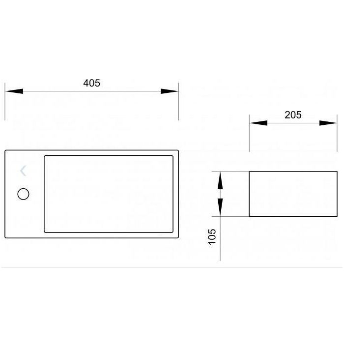 MINOTTI umivaonik nadgradni 405x205x105 s otvorom za slavinu lijevi