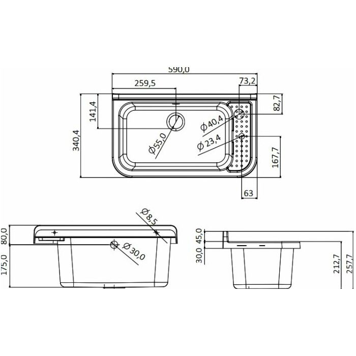 -Dimenzije: 590 x 340x h257 mm (slika 2)