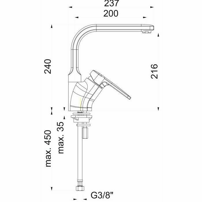 Voxort Naya je visoka jednoručna miješalica za sudoper visokotlačnog tipa. Dolazi u kompletu sa priborom za montažu i tri fleksibilna priključna crijeva 3/8"x40cm, kartuša fi 35mm. Miješalica je izrađena od kvalitetnog mesinga, u krom izvedbi visokog
