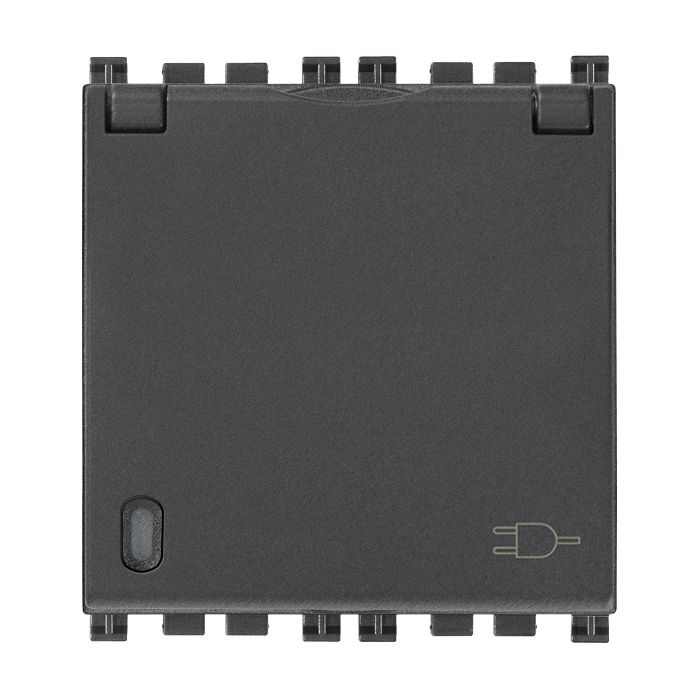 Priključnica, utičnica talijanski standard. Ravnih linija koje su u kontrastu s blago zakrivljenom površinom mehanizma, upotpunjeni s ukrasnim okvirom postaju jedinstveni detalj u prostoru.