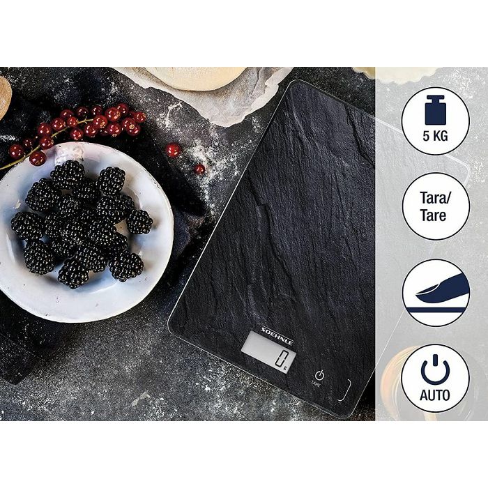 Sa svojim visokim kapacitetom vaganja od 5 kg i preciznošću od 1 g, digitalna kuhinjska vaga Soehnle Page Compact 300 Slate prikladna je za svakodnevnu upotrebu. Njegov moderan dizajn čini ga posebnim draguljem u vašoj kuhinji. P