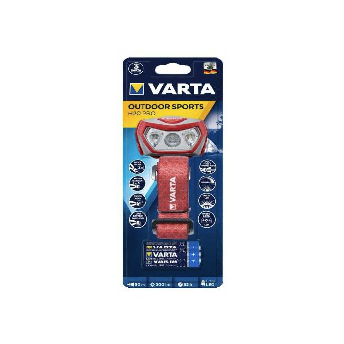 Varta Outdoor Sports H20 Pro Head Torch je robusna svjetiljka za vanjske sportove s do 200 lumena. Sadrži funkciju zatamnjivanja, zakretnu glavu, indikator slabe baterije, noćni vid i podesivi remen za glavu. Uz praktičnu i visoku udobnost noš