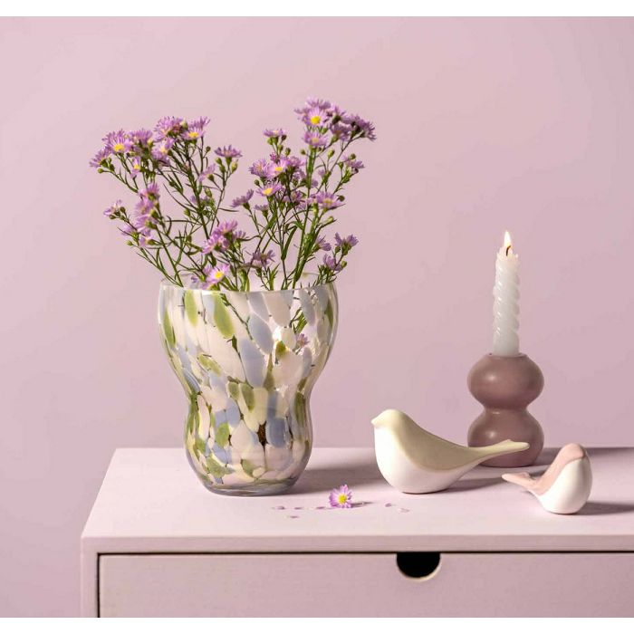 Sa svojim delikatnim točkicama u boji u ružičastoj, lila, zelenoj i krem ??boji, donosi proljeće izravno k vama.