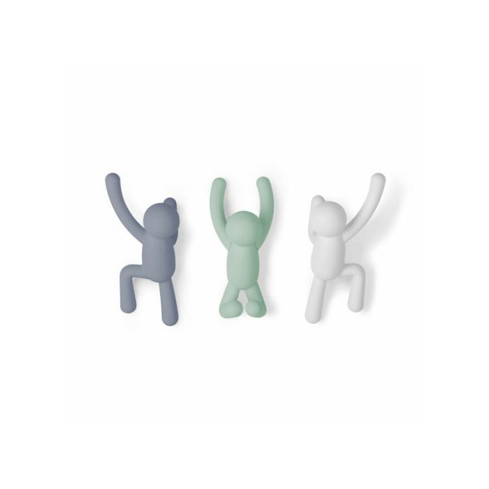 Set od 3 zabavne i jedinstvene zidne kuke popularne figure prijatelja koji se penje po zidu u različitim položajima. Buddyjeve ruke, noge i glava su mjesta na koja možete objesiti svoju odjeću ili torbe.