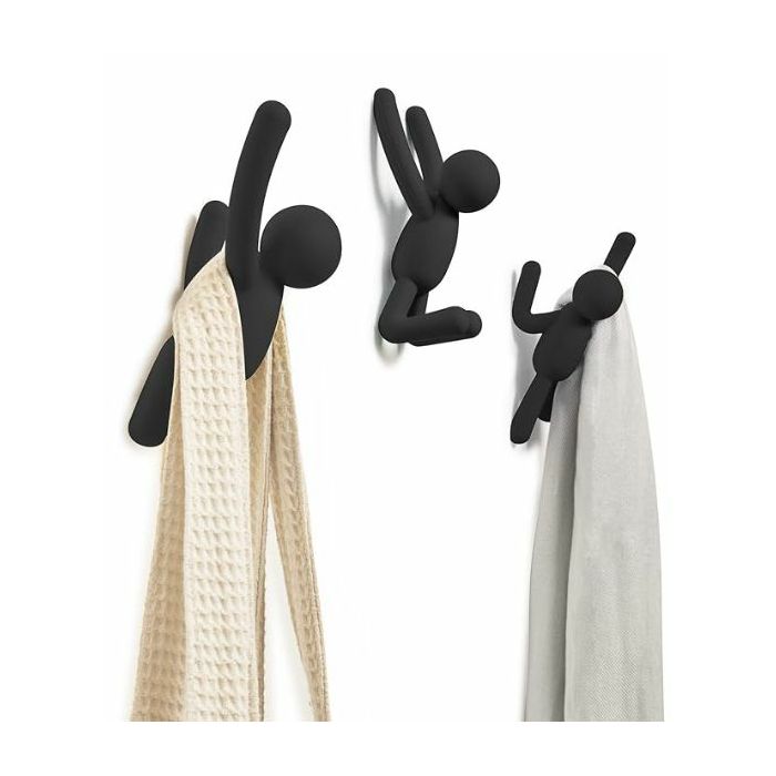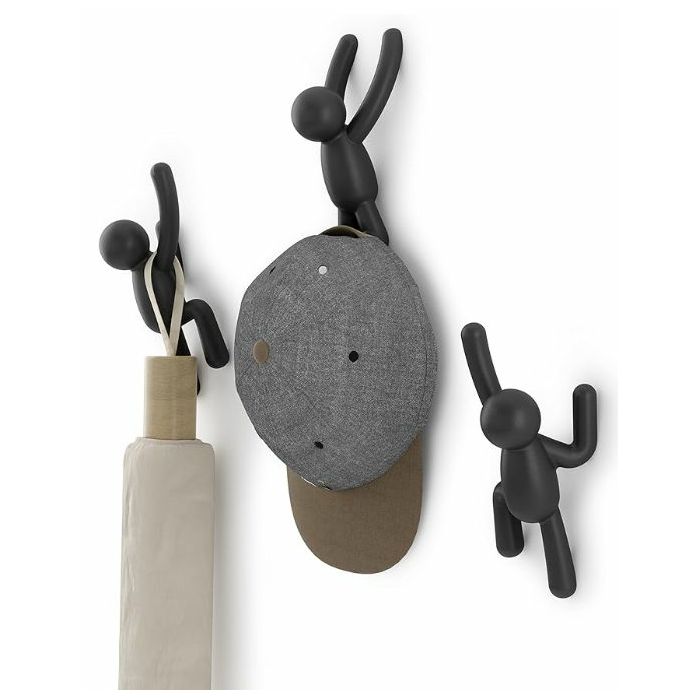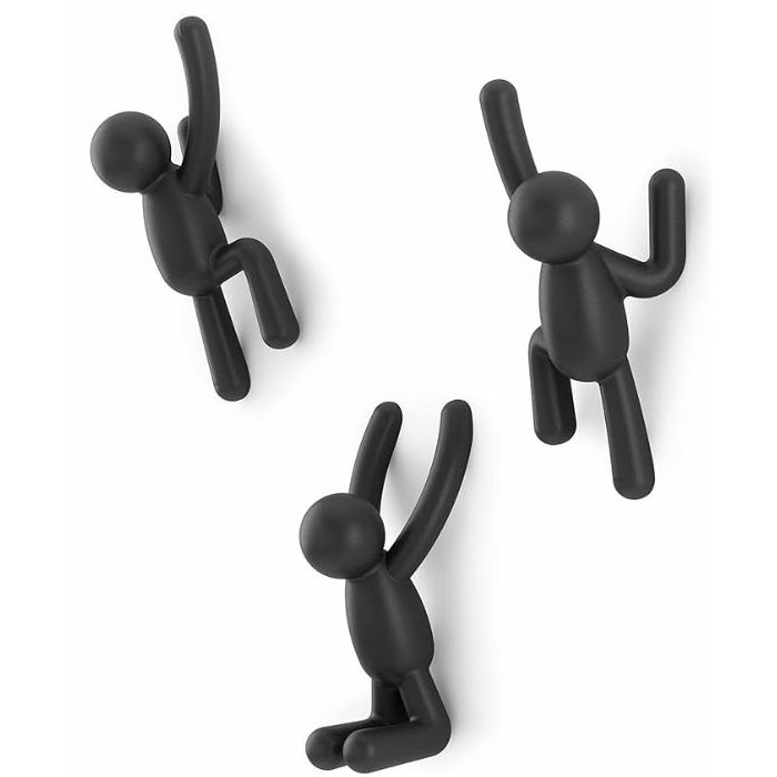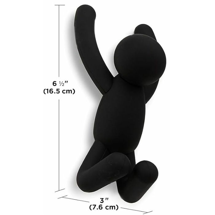 Set od 3 zabavne i jedinstvene zidne kuke popularne figure prijatelja koji se penje po zidu u različitim položajima. Buddyjeve ruke, noge i glava su mjesta na koja možete objesiti svoju odjeću ili torbe.