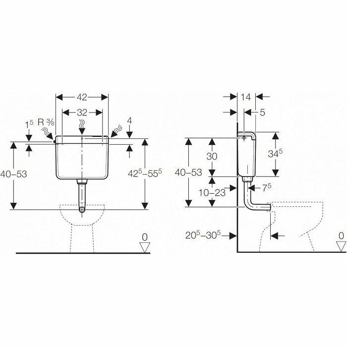 GEBERIT nadžbukni vodokotlić AP116plus za dvokoličinsko ispiranje.