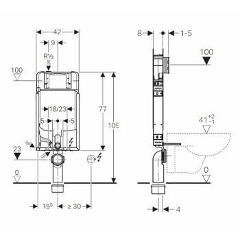 GEBERIT element Kombifix za zidni WC s ugrađenim vodokotlićem Sigma. Naziv upotrebe: za zidane zidove za ugradnju u pregradne instalacije, djelomične visine ili u visini prostora za zidne WC školjke s dimenzijama priključaka u skladu s EN 33: