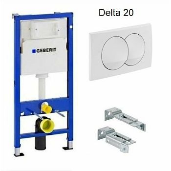 Komplet sadrži: – montažni element za WC (ugradbeni vodokotlić) – Delta20 aktivacijska tipka, dvokoličinska, bijela