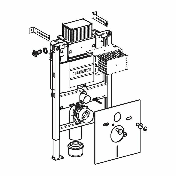 GEBERIT element Kombifix za zidni WC s ugrađenim vodokotlićem Sigma. Naziv upotrebe: za zidane zidove za ugradnju u pregradne instalacije, djelomične visine ili u visini prostora za zidne WC školjke s dimenzijama priključaka u skladu s EN 33: