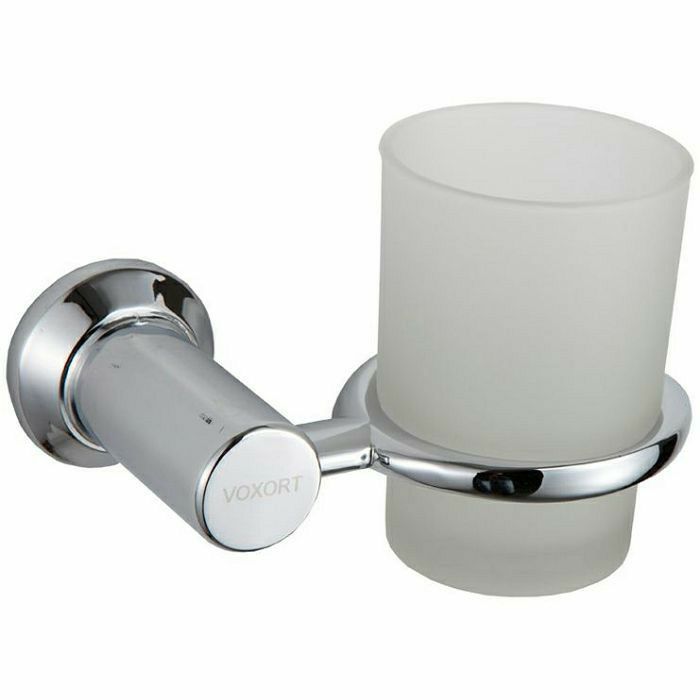 Voxort 86000 staklena čaša sa kromiranim držačem. Montaža na zid, dimenzije (šxv) : 6,7 x 9,6 cm.