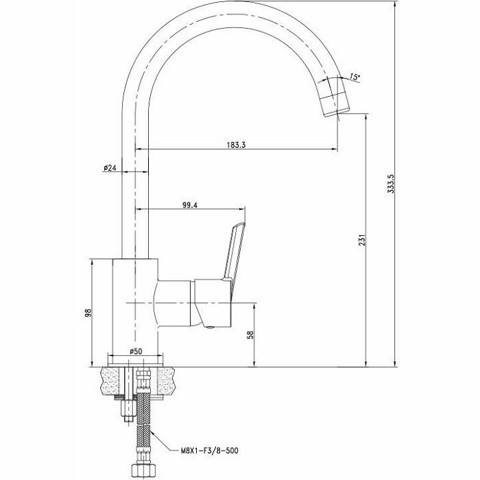 Voxort Glem je visoka jednoručna niskotlačna miješalica za sudoper. Dolazi u kompletu sa priborom za montažu i tri fleksibilna priključna crijeva: dva crijeva dužine 3/8"x50 cm i jednog crijeva dužine 3/8"x45 cm, kartuša fi 35 mm. Miješalica je izrađ