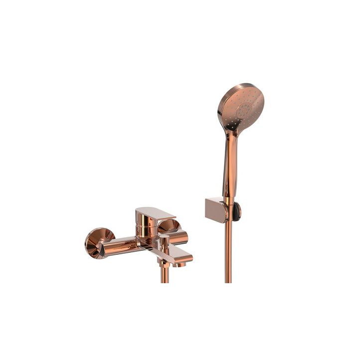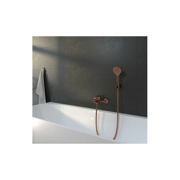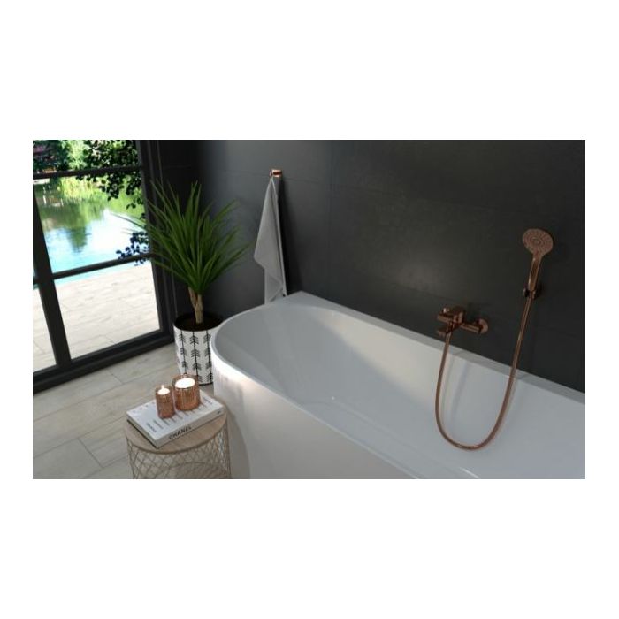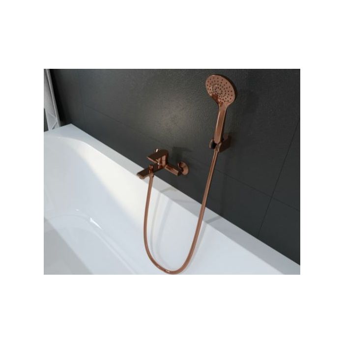 Voxort Tea Rose Gold miješalica za kadu, sa tuš setom. Modernim dizajnom i elegantnom Rose Gold bojom uklopit će se u sofisticirane kupaonice i ambijente koje će podignuti na novu razinu. Tuš set pripadajuće boje dolazi uz miješalicu što skraćuje vri