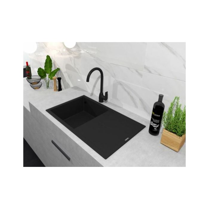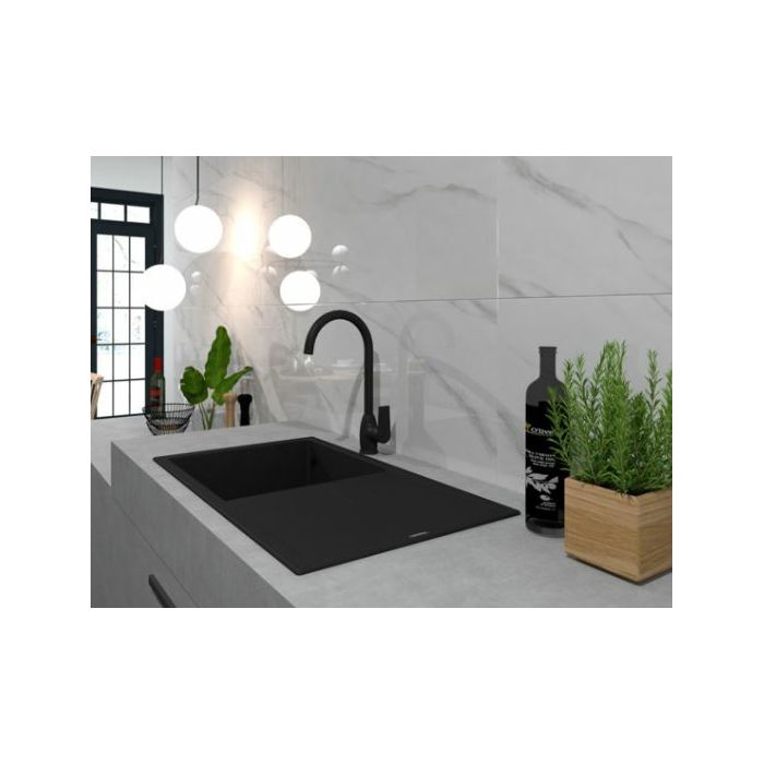 Voxort Tea Black visokotlačna miješalica za sudoper sa visokim i zaokretnim izljevom. Dolazi u kompletu sa dva priključna crijeva 3/8" x 50cm i priborom za montažu. Voxort Tea Black miješalica za sudoper je mat crne boje, izrađena od mesinga.