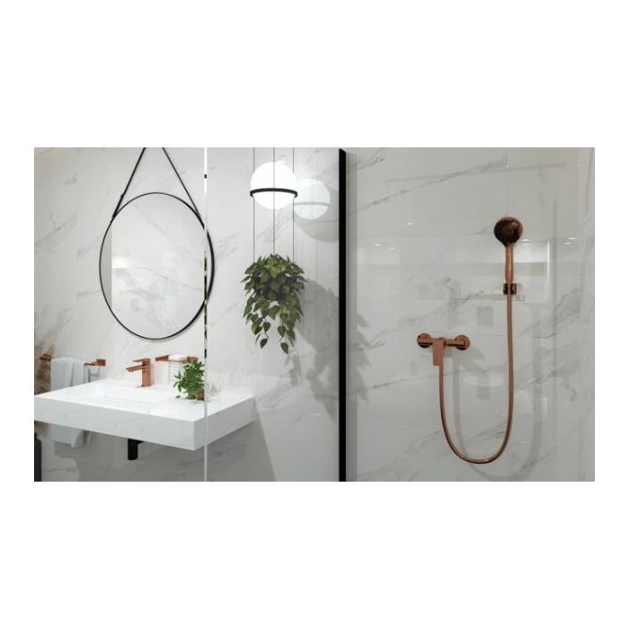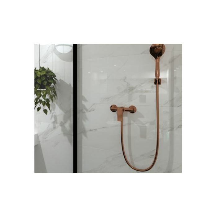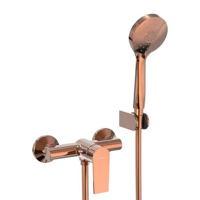 Voxort Tea Rose Gold miješalica za tuš kadu, sa tuš setom. Modernim dizajnom i elegantnom Rose Gold bojom uklopit će se u sofisticirane kupaonice i ambijente koje će podignuti na novu razinu. Tuš set pripadajuće boje dolazi uz miješalicu što skraćuje