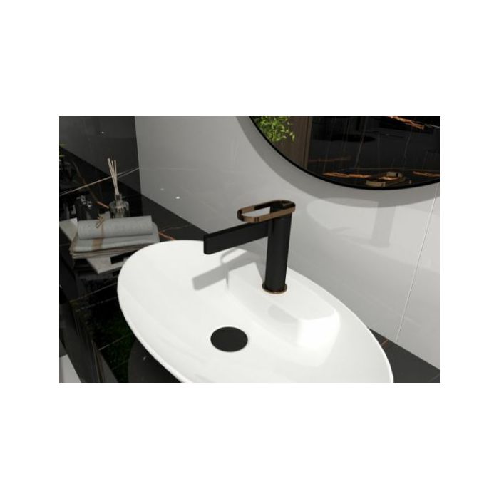 Voxort Amora jednoručna miješalica za umivaonik. Modernim dizajnom, tankim linijama te elegantnom kombinacijom crne i rose gold boje uklopit će se u sofisticirane kupaonice i ambijente koje će podignuti na novu razinu.