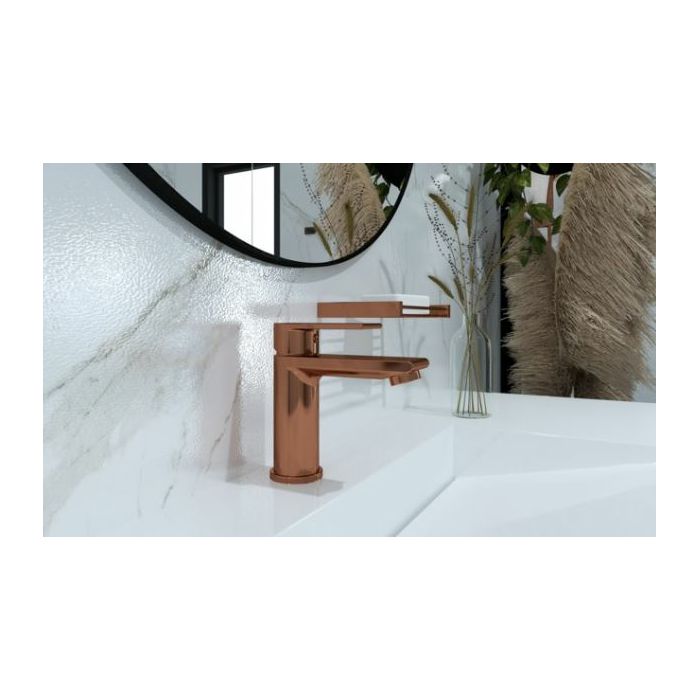 Voxort Tea Rose Gold miješalica za umivaonik, sa gornjim dijelom sifona. Modernim dizajnom i elegantnom Rose Gold bojom uklopit će se u sofisticirane kupaonice i ambijente koje će podignuti na novu razinu.