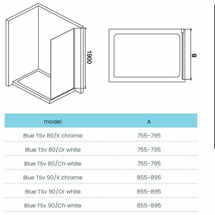 TUŠ STIJENA "WALK IN" VOXORT BLUE TS 80x200 8 mm N14797