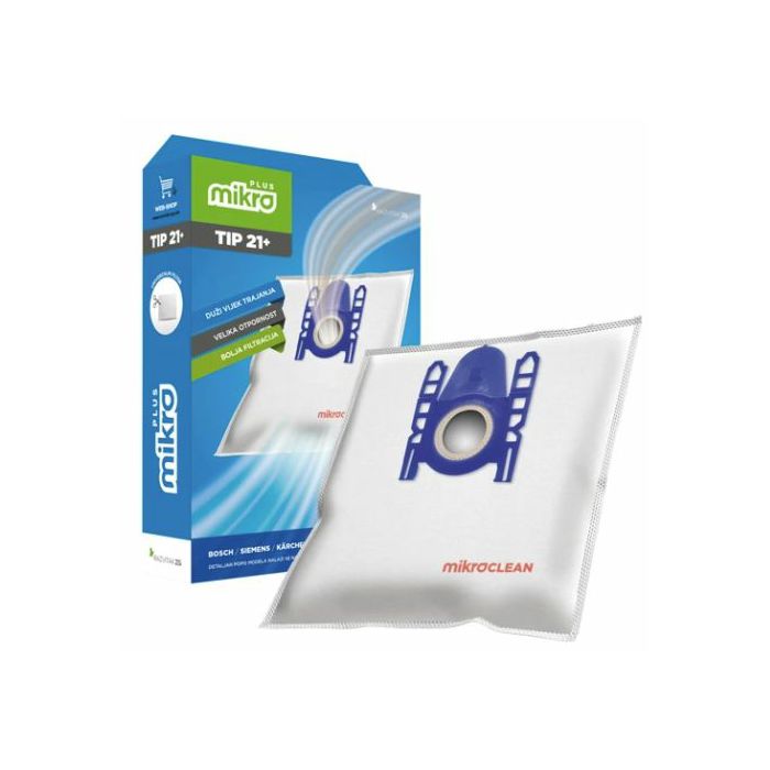 Iskoristite maksimalnu snagu svog usisavača uz MIKRO vrećice za usisavač 4/1 TIP 21+. Ove mikro PLUS vrećice pružaju vrhunsku filtraciju i izdržljivost zahvaljujući posebnoj netkanoj tkanini koja omogućuje bolju filtraciju zr
