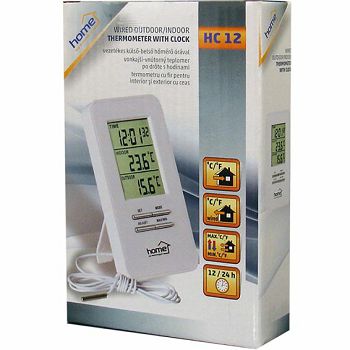 Vremenska stanica za mjerenje vanjske (-50 – +70 °C), unutarnje (-9 - +50°C), žična sonda za mjerenje vanjske temperature dužine 1,4 metra, prikaz min i max vrijednosti, prikaz 12/24 sata , prik