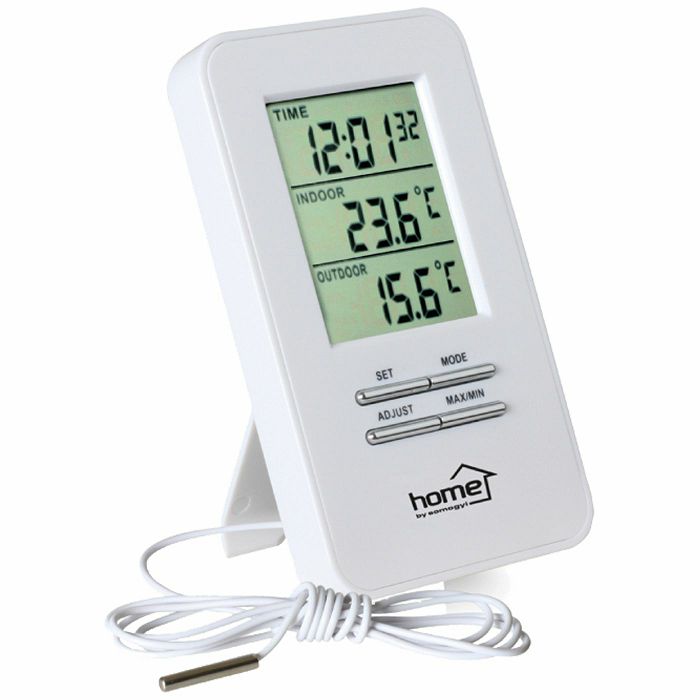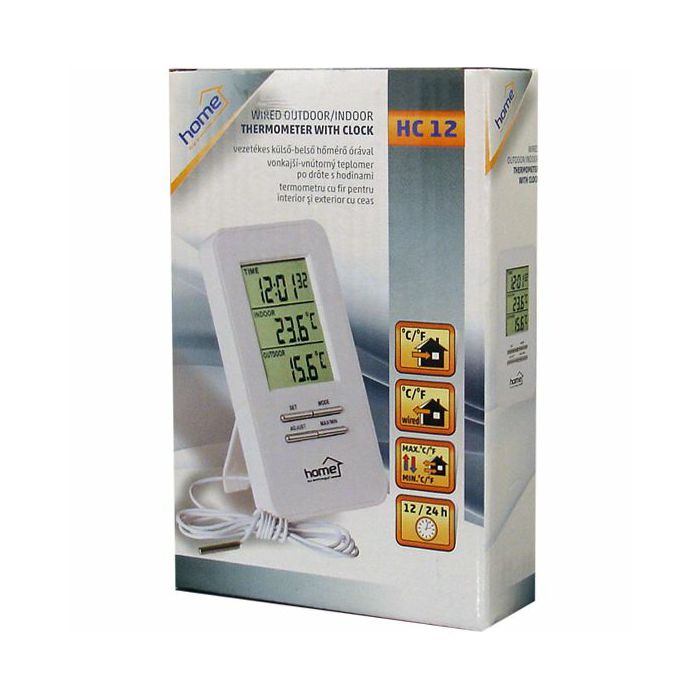 Vremenska stanica za mjerenje vanjske (-50 – +70 °C), unutarnje (-9 - +50°C), žična sonda za mjerenje vanjske temperature dužine 1,4 metra, prikaz min i max vrijednosti, prikaz 12/24 sata , prik