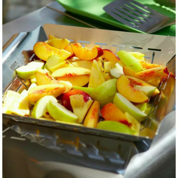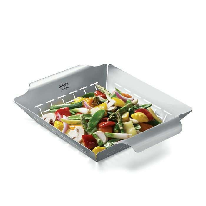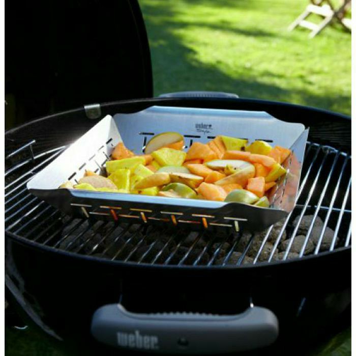 Velika Weber Style košara za povrće služi za pripremu sitnu narezanog ili sjeckanog povrća. Košara ima jedinstveni izgled dizajniran kako bi se ublažilo savijanje i omogućilo da dimni okus prijeđe na hranu. Izrađena je od nehrđajućeg čelika.