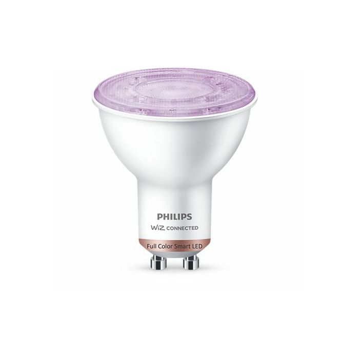 Dodajte difuzno pametno svjetlo u boji standardnim uvučenim rasvjetnim tijelima i reflektorskim svjetiljkama u svom domu pomoću pametne LED žarulje GU10 tvrtke Philips u svim bojama. Ta je žarulja povezana s aplikacijom WiZ. Upotrebljavajte je s post