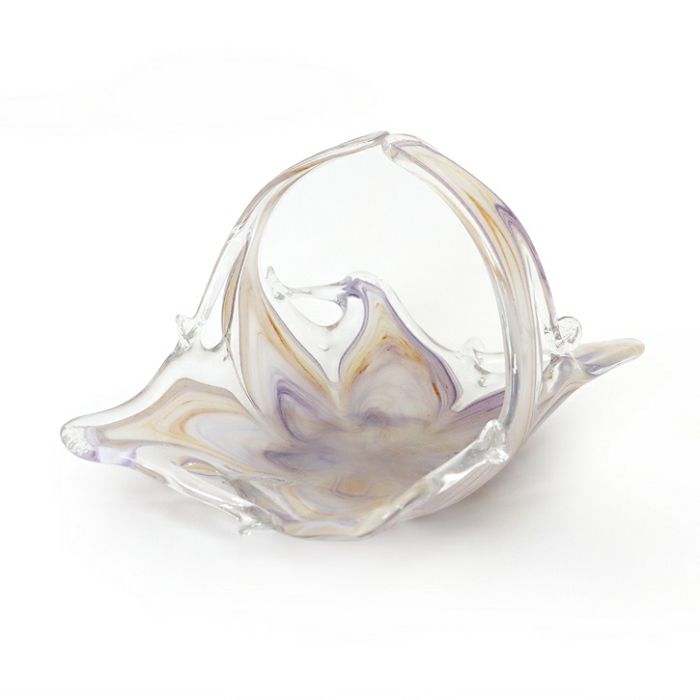Staklena zdjela-košarica, izrađena u Murano tehnici (25×16 cm, jantarna), spaja eleganciju i praktičnost u jednom.
