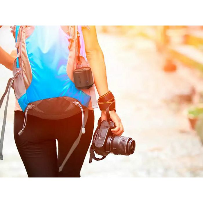 Ovaj sitni zvučnik potpuno je vodootporan i za svoju veličinu daje iznenađujuće snažan zvuk.