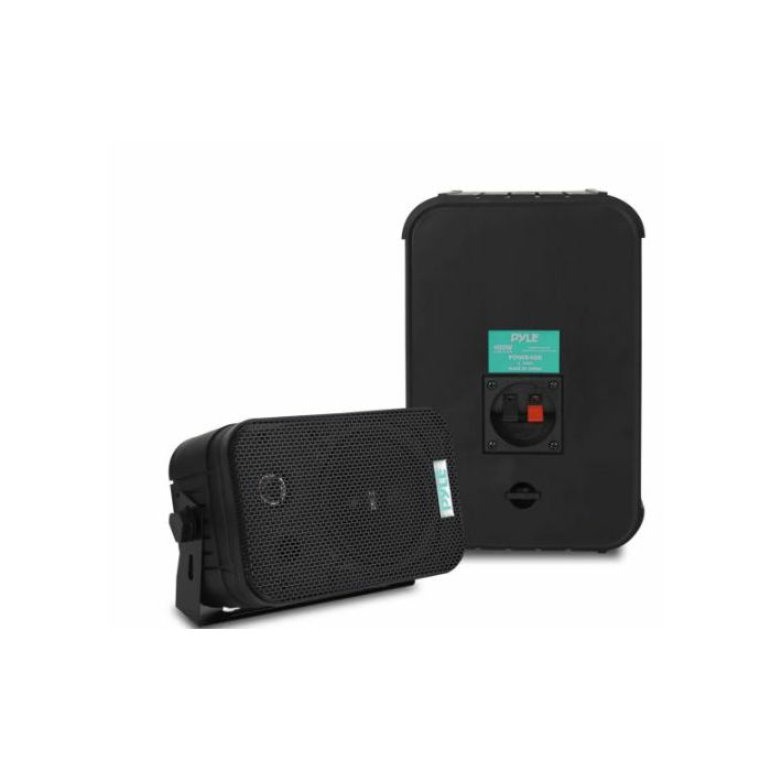 Ovi crni Pyle vanjski vodootporni zvučnici izvrsni su za upotrebu na brodovima, palubama, popločanim dijelovima dvorišta ili kraj bazena - bilo gdje na otvorenom. Potpuno su vodootporni